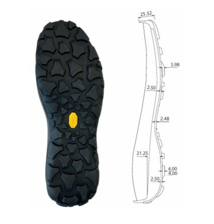 La suola Vibram 114P Bomba è una soluzione specialistica progettata per offrire un volume importante e una protezione superiore. Caratterizzata da un design robusto con tasselli ben distanziati, garantisce una trazione eccezionale su terreni inconsistenti come fango e terra soffice, facilitando l’espulsione dei detriti. Realizzata con una mescola ultra-durevole, questa suola è particolarmente indicata per la risuolatura di calzature che richiedono una base d’appoggio ampia e una resistenza estrema all’usura, assicurando stabilità e sicurezza anche nei lavori più gravosi o nelle escursioni più impegnative.