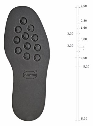La suola Vibram 2055 Eton rappresenta l’eccellenza del design classico combinata con la tecnologia della gomma moderna. Caratterizzata dal celebre disegno a “borchie”/”cerchi” (molto comune nelle calzature Church’s), offre un’estetica raffinata tipica delle calzature inglesi, mantenendo un profilo sottile ed elegante. A differenza delle suole in cuoio, la mescola Vibram garantisce un’aderenza superiore sulle superfici bagnate e una resistenza all’usura prolungata, rendendola la scelta ideale per la produzione o la riparazione di scarpe Oxford, Derby e calzature formali che richiedono praticità senza rinunciare allo stile.