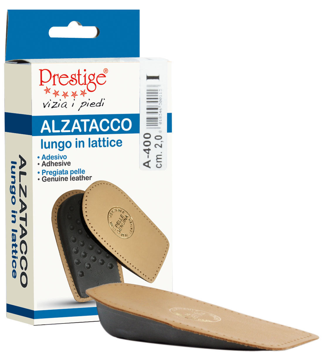 L’alzatacco Prestige è un accessorio ortopedico di alta qualità, progettato per migliorare la postura e aumentare il comfort all’interno di ogni tipo di calzatura chiusa. Realizzato con una base in morbido lattice ammortizzante e rivestito in vera pelle naturale, questo alzatacco offre un supporto stabile al tallone, riducendo le sollecitazioni durante la camminata e alleviando la tensione ai tendini e alla schiena. La sua struttura ergonomica è studiata per adattarsi perfettamente alla forma della scarpa senza scivolare, garantendo traspirabilità e una piacevole sensazione al tatto. È la soluzione ideale per chi desidera un piccolo rialzo senza rinunciare al benessere del piede e alla qualità dei materiali artigianali.