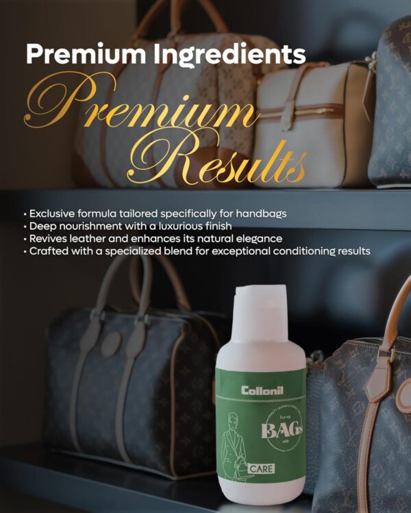 La crema Collonil BAGS CARE è il trattamento premium specifico per la cura e il mantenimento di borse e accessori in pelle liscia. Grazie alla sua formula arricchita con ingredienti nutrienti di alta qualità, questo prodotto penetra in profondità nelle fibre del pellame, restituendo morbidezza e prevenendo la formazione di crepe causate dal tempo o dall’usura. Non solo idrata, ma ravviva anche i colori originali senza alterare la finitura naturale della borsa. Ideale per chi cerca una soluzione professionale per preservare la bellezza e la flessibilità dei propri articoli di pelletteria più pregiati.