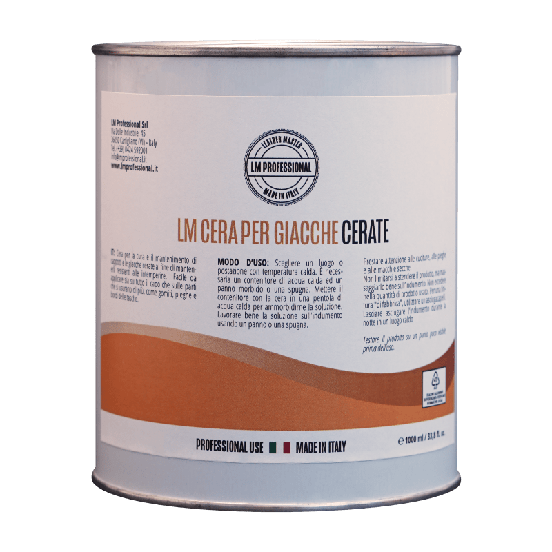 Lm Cera per giacche cerate: Trattamento rigenerante professionale, perfetto per giacche Barbour e tessuti cerati o oleati. Impermeabilizza in profondità e protegge il cotone, prolungando la vita del tuo capo preferito.