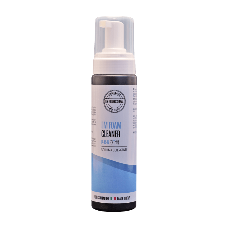 Il Lm Foam Cleaner è un detergente a secco in schiuma attiva, progettato per la pulizia rapida ed efficace di pelli lisce, scamosciate, nabuk e tessuti tecnici. La sua particolare formulazione permette di rimuovere sporco, macchie e polvere senza l’utilizzo di acqua, evitando così il rischio di aloni o l’irrigidimento del materiale. La schiuma agisce in profondità sollevando le impurità dalle fibre, rendendolo il prodotto ideale per la manutenzione di sneakers, scarpe classiche e interni di borse. Sicuro su un’ampia gamma di superfici, lascia il materiale pulito e rinnovato, preservandone la naturale morbidezza e traspirabilità originale.
