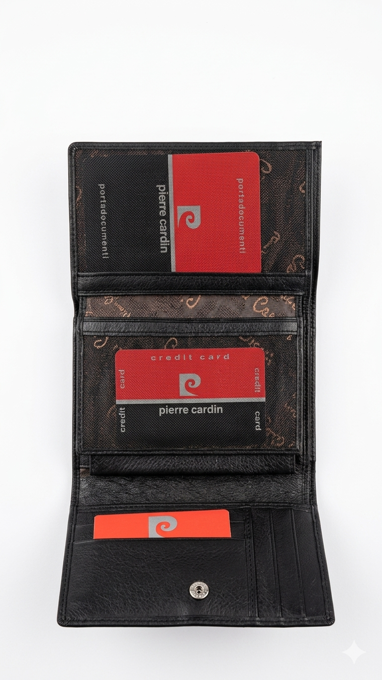 Questo portafoglio firmato Pierre Cardin è un accessorio compatto e funzionale, ideale per la donna che cerca eleganza senza rinunciare alla praticità. Realizzato interamente in vera pelle di alta qualità, il modello P076 si distingue per una struttura intelligente che massimizza lo spazio: dispone di uno scomparto dedicato alle banconote, 5 slot per carte di credito e 6 tasche interne per documenti, di cui due dotate di finestra trasparente per una rapida consultazione. La chiusura principale e il pratico scomparto portamonete sono protetti da bottoni a pressione sicuri. Caratterizzato da un design intramontabile e rifinito con il logo del brand, viene fornito in una scatola regalo che ne esalta il prestigio.
