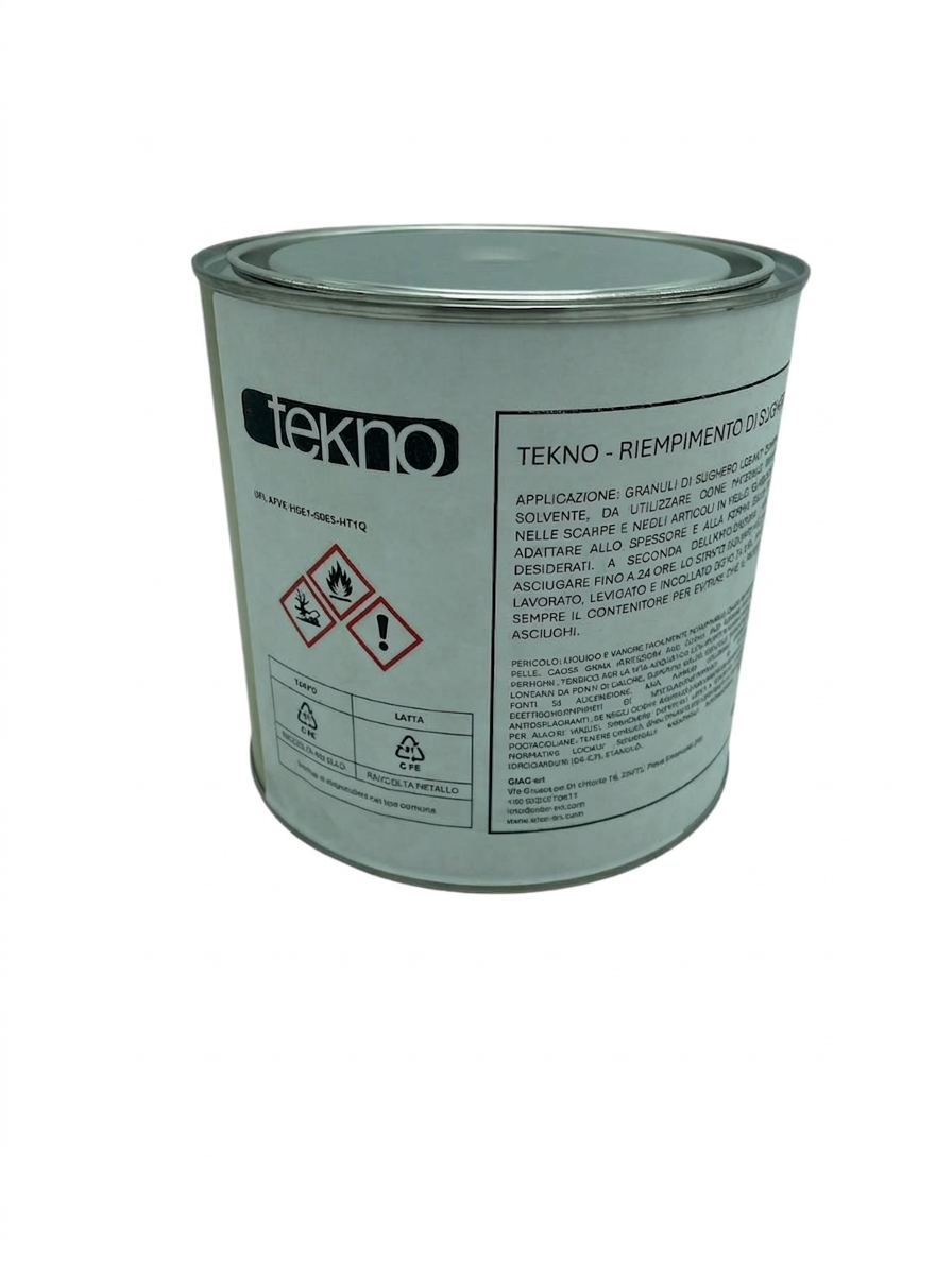 Il riempimento di Sughero Tekno è una soluzione professionale a base di granuli di sughero legati con speciali resine a solvente, progettata specificamente per l’industria calzaturiera e la riparazione artigianale. Questa pasta è ideale per livellare e colmare i vuoti tra il sottopiede e la suola, garantendo un isolamento termico ottimale e un comfort duraturo. La sua formulazione permette una stesura precisa che si adatta allo spessore desiderato, asciugando in circa 24 ore a seconda dell’intensità dello strato. Una volta solidificata, la pasta può essere facilmente lavorata, levigata e incollata, mantenendo un’eccellente flessibilità che evita crepe o cedimenti strutturali nella calzatura.