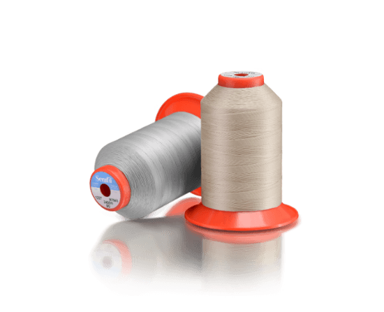 Filo in poliestere continuo Serafil ad alta resistenza, perfetto per cuciture precise e durature su pelletteria, calzature e tessuti tecnici pregiati.