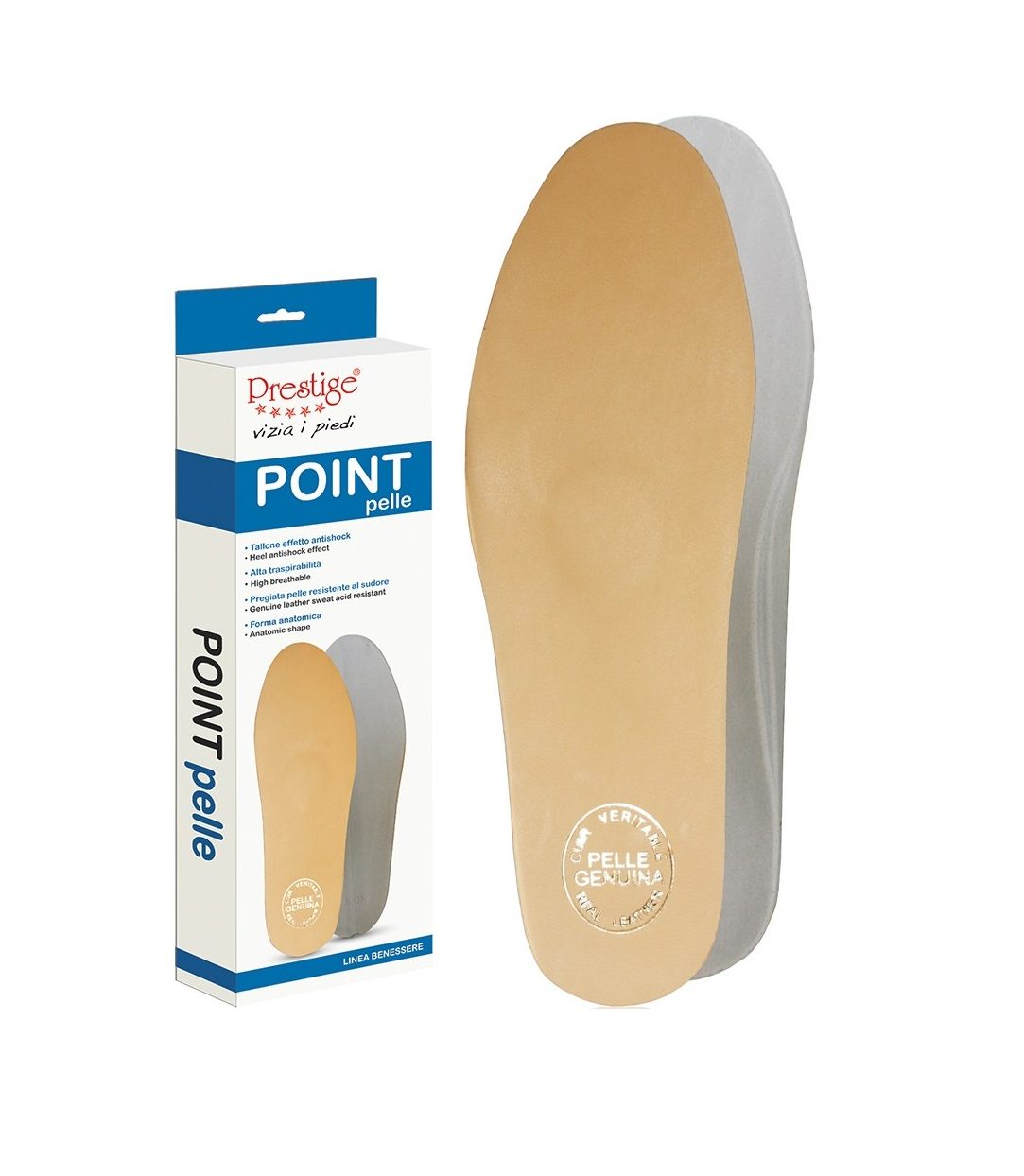 La soletta Prestige Point Pelle rappresenta il vertice del comfort anatomico unito all’eleganza della vera pelle. Progettata per chi cerca un supporto tecnico senza rinunciare alla naturalità, presenta una struttura ergonomica con punti di scarico differenziati che ammortizzano l’impatto su tallone e metatarso. Il rivestimento superiore in pregiata pelle garantisce una traspirabilità superiore e un tocco raffinato, adattandosi perfettamente alla morfologia del piede. Grazie al supporto plantare integrato e allo strato inferiore in lattice, questa soletta stabilizza la camminata, offrendo un benessere duraturo e un microclima ideale all’interno di calzature classiche, casual o professionali.