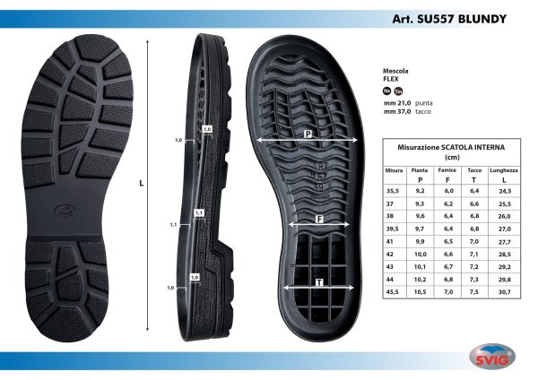 La Suola Svig Blundy 557 è la soluzione professionale ideale per il risuolamento e la riparazione di stivaletti e calzature casual. Realizzata in una speciale mescola di gomma espansa ultraleggera, suola progettata per offrire comfort senza appesantire la scarpa, garantendo un’ottima tenuta e durata nel tempo.